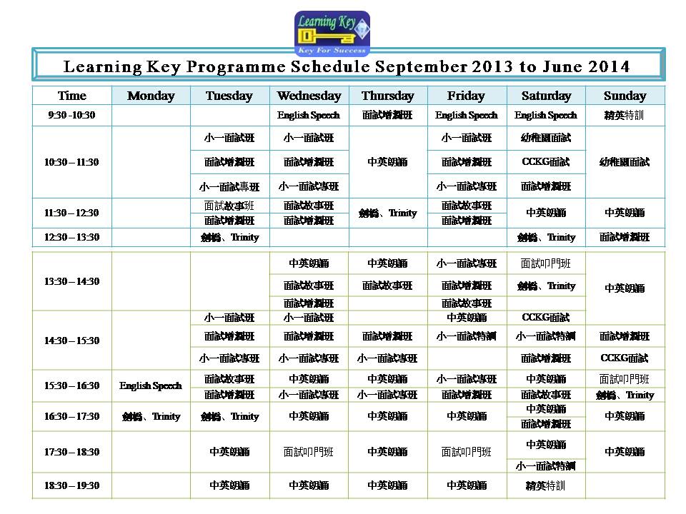 Learning Key Time Table 2013-2014